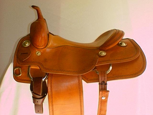 Bob’s Custom Saddles 16.5" Cutter; Cutting Saddle; New saddle from Bob’s featuring the Buster Welch tree, padded seat and close contact skirting. Note slight cosmetic discoloration on fenders and skirts
