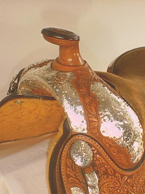 16" with 3 corner plates, silver cantle, silver swell caps, silver rigging