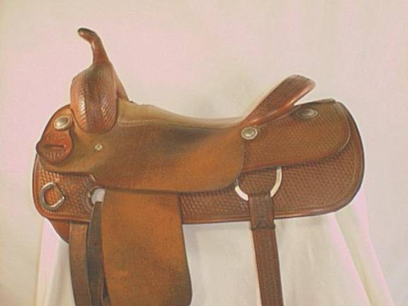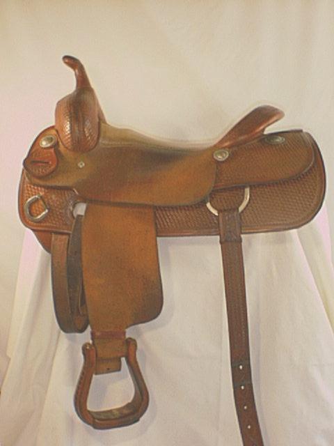Bob’s Custom Saddles 16” Teddy Robinson Cowhorse; Cowhorse Saddle In unusually fine condition this cowhorse saddle features close contact plate rigging, ½ breed rough out/basket stamp tooling and flank cinch.
