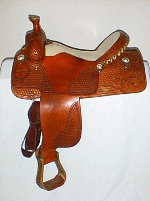 Martin Saddlery15.5” All Around. In nearly new condition, here is a great all around saddle hand made by Martin! Genuine fleece lining and half breed floral/ basket stamp tooling.