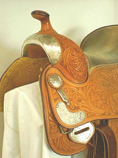 conchos and tips, sterling conchos on stirrups, butterfly skirts, full floral