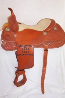 Bob’s Custom Saddles 16.5” Teddy Robinson Cowhorse trophy saddle. Another mint condition trade in to www.cowdogsaddles.com! Teddy Robinson tree with skirt rigging. Smooth out seat, saddle comes complete with flank cinch.