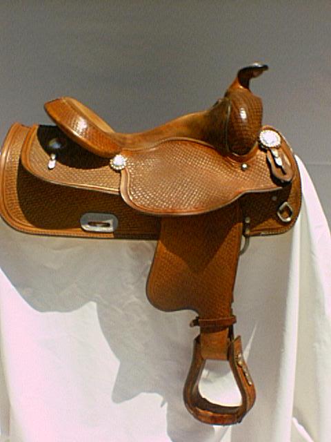 Reining Saddle; Though unmarked, this saddle is undoubtedly reflects Crates quality and affordability. Upgraded conchos and shortened fenders make this the ideal work or show saddle for a shorter rider.