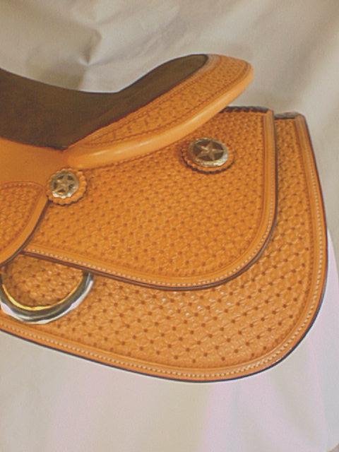 oxidized sterling "Star of Texas" conchos, this saddle again features