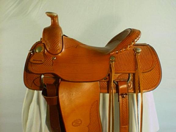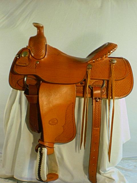 Billy Cook, Sulphur, Oklahoma Hard Seat Roper 16”; A beatuful trade in to cowdogsaddles.com, this one is brand new with tags. This fine roper features post horn, rawhide stirrups, silver laced cantle and saddle strings.
