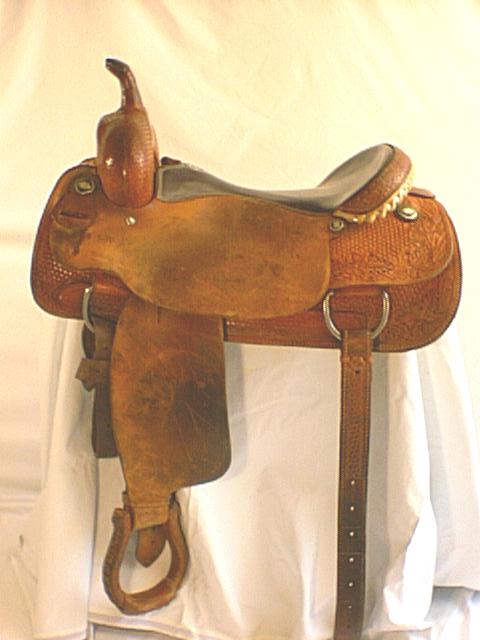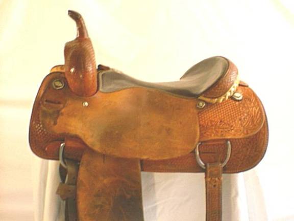 Used Billy Cook 17” Cutter. Featuring half breed tooling with rough out seat jockey and fenders, and upgraded oxidized conchos, this cutter has had very little use and offers a great value and ride. Flank Cinch included.