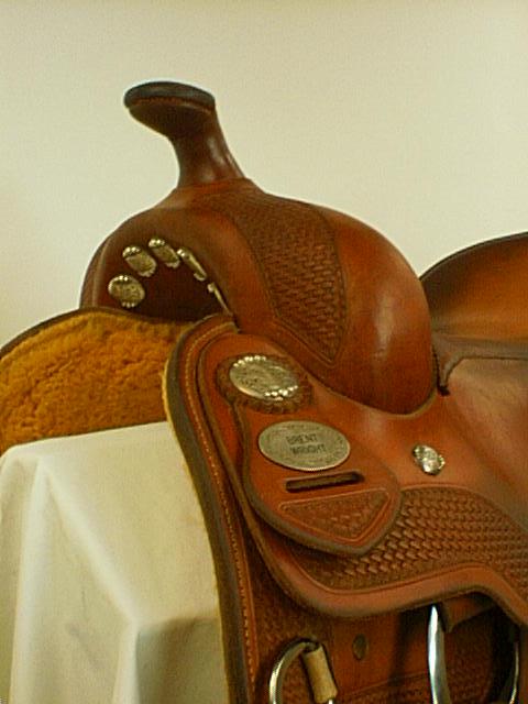 Bob’s Custom Saddles Used 16” Brent Wright Reiner. . Built on a 7” gullet designed for especially for NRHA Champion Brent Wright, with very little use. Sterling Teardrop conchos and medium oil color.