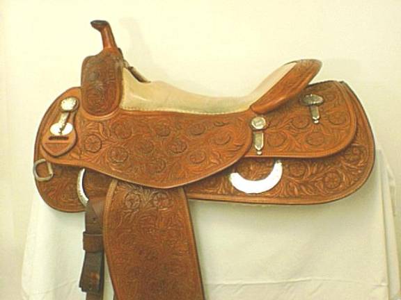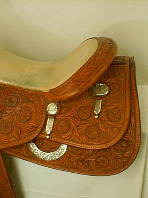 pre-turned stirrups, smooth out cream colored seat, and sterling overlay conchos