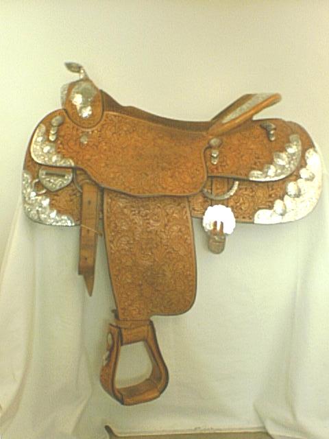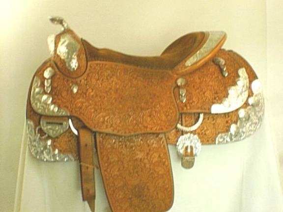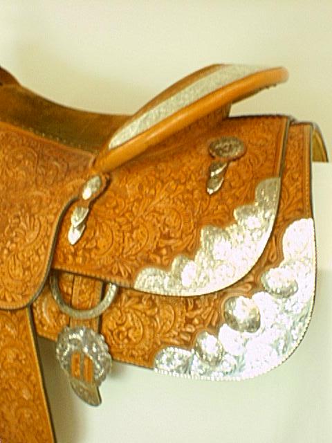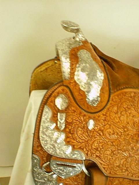cloud out to the edge) and a silver horn, this saddle is fully tooled in the