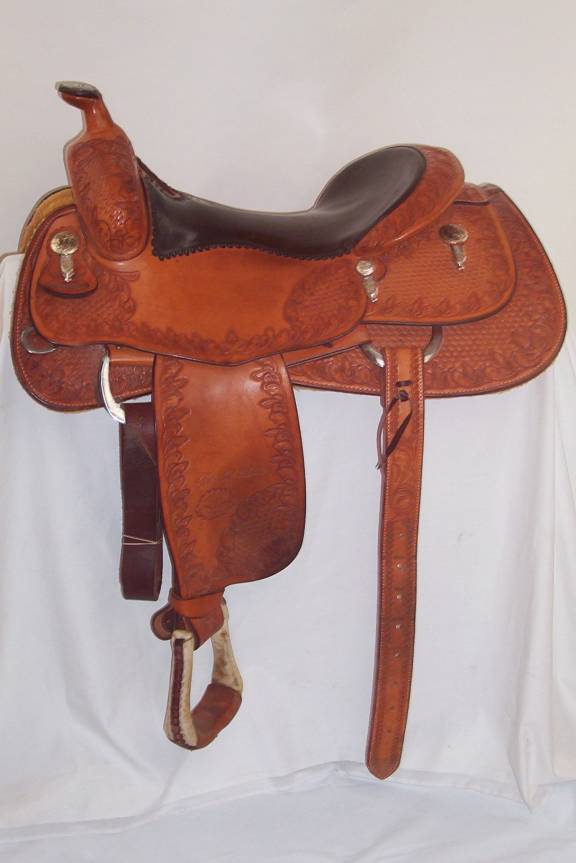 Billy Cook Used 16” Butterfly Skirt Reining/All Around. Build on the DL tree and featuring floral border tooling this saddle is hardly used! Silver conchos and tips.