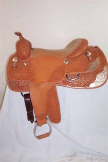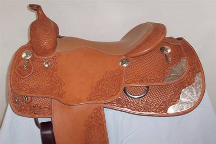 Cowboy Central 16.5” Mint Tim McQuay Reiner. Absolutely brand new condition, with sterling corner plates, tips and conchos, smooth out padded seat, close contact in skirt rigging and combination basket/acorn tooling.
