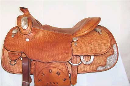 Blue Ribbon Custom Tack16” Trophy Show Saddle. Here’s a great starter or second show saddle. Sterling trim. Also available in 15.5” with two sets of corner plates.