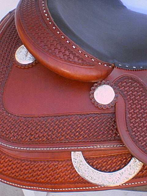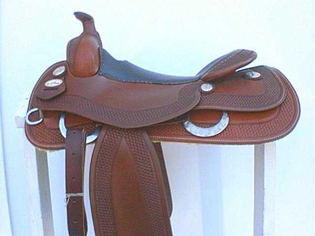 Cowdogsaddles.com has acquired a floor sample from this year’s Congress and is passing the savings on to you: gorgeous medium oil with sterling silver conchos, sterling covered rear rigging "D" and sterling conchos under the gullet. The Tom McCutcheon model is the same tree and seat as the Bob Avila, except this has a single layer of padding for closer contact.