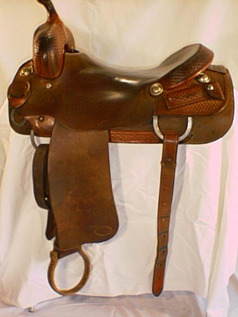 A fine saddle from the famous Texas custom shop, this one has a hard seat, rough out seat jockey and fenders and basket stamping. Slight cosmetic scuff on seat.