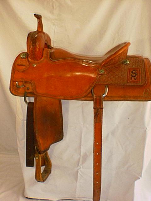 An opportunity for someone who needs a top quality cutter in a larger size, this customized handmade saddle is made by Clark’s Tack from Firebaugh, California. Nettles stirrups, Great Condition.